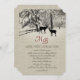 hjorten i land under vintern över det varma, rustiska utseendet av en sammanbrott och accentuerad med ett rött eller annat färg monogram.