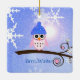 Vintervit snöflingor med vismisk Mr Hoot Uggla som donerar ett blått skidlock: "Brr...Winter".