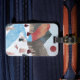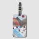 Ett vackert landskap med ett unikt struktur som visar ett flod- och bergslandskap med en räv i en hoppjakt i snö i röda, grönt, blått och beige.