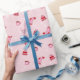 Soft pink wrapping paper featuring cozy winter mittens, snowflakes and warm holiday touches. Perfect for winter gifting.