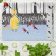 Winter Joy - Katt med scarf Birch Träd Kardinals Kökshandduk
