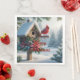 Winter-kardinal på ett Festive Birdhouse Pappersservett