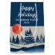 Winter Landscape Forest Navy Blue Red Moon Drawing Holiday Gift Bag. Calm winter snow landscape with forest. Happy holidays in a trendy script. Personalized the text or erase it.
