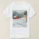 The houses are located on snow-covered hills, and a wooden fence runs between them.