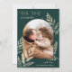 En helgdag för chic och elegant med ett enda lodrät- eller porträtt-orienterat foto i en unik bågform, som är förskönad med finmaskigt botaniskt blad. "Denna säsong" visas längst upp till lämnad, med din familj namn på nedre högerna. Ett förfinat naturinspirerat val inför julen 2021 hälsning.