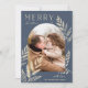 En helgdag för chic och elegant med ett enda lodrät- eller porträtt-orienterat foto i en unik bågform, som är förskönad med finmaskigt botaniskt blad. "God jul" visas längst upp till lämnat, med namn i den nedre högerna. Ett förfinat naturinspirerat val inför julen 2021 hälsning.