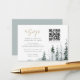 Kortet för Winter Ligcape Gräs Forest QR Code Bröllop OSA Enclosure Card. Modern elegants minimalistiska QR-kodkort för QR-bröllop OSA. OSA kort med handmålad vinterskog med vattenfärg i skifferdammblått och grått med modernt kalligrafi och QR-kod. Du kan anpassa ordalydelsen, teckensnittet stil, färg och storlekt framför och bakom detta botaniska OSA kort. Matchande objekt är tillgängliga.