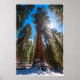 Sunlight filters through towering Giant Sequoias in winter, illuminating one of California’s most iconic trees. A majestic forest landscape print for lovers of national parks and towering redwoods.