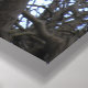 Ett foto av komplext tvinnat och sammanvävt magnolia träd grenar mot ett blå himmel. Fotot från mars 2012 har några magnoliska knoppar precis börjat blomma. Det här fotot togs med ett DSLR-format och har ett standardformat på 3:2, 35 mm stil.