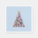 Ett sött, färglöst Julgran i baby blue bakgrund, med abstrakt och modernt design i mitten av århundradet. En festlig och modern design inför julsäsongen.