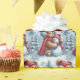 En vattenfärgsbild av en udda nalle i rött vinteromkrets omfattar ett glatt snögubbe i en snöskog