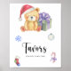 "Det är en Beary Sweet baby på väg." Fira med den här nallen, den där babyduschen party! Vaterfärgssöt nalle med julklapp, i tomhatt. På baksidan av kortet finns helgdag christmas mönster (candy cane, julgran boll leksak, julsockar). Matchande objekt är tillgängliga.