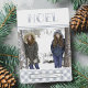 Vårt Winter Noel-fotokort för helgdag sportar i stil i vintrynkor av silver grått, skarpt vitt och rökigt marint blått med en nyans av kol. Konstruktionstexten "NOEL" överst i dekorationsbokstäver med en grund gräns av buffel i isig blått grått och vitt. Anpassa med din familj namn på ett banderoll över grund vid året.