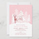1:a födelsedag Rosa Winter Wonderland, Onederland bjudation with Söta accents. Lite snöflingor i bakgrunden. I en front med en trevlig hjort och gräs träd. Ange en söt och magisk ton för party med detta inbjudan. Perfekt för din lilla snöflingas första födelsedag.