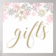 vinterskylt över gåvor från landbaserade födelsedagsfester fyrkantigt med rosa och guld snöflingor.