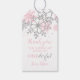 Vinterlandstag på första födelsedag med rosa och silver snöflingor. Tack för att du skapar min födelsedag underbar!