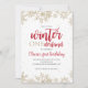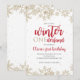 Vinter Onederland guld glitter Snöflingor och röd text först födelsedagsfest inbjudan.