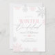 Vänner och familj i inbjudan till din lilla födelsedagsfest med denna inbjudan till "Winter Onederland", som handlar om rosa och silver snöflingor.