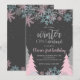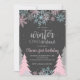 Winter Onederland Rosa, Blue, Silver glitter Snöflingor och träd först födelsedagsfest inbjudan.