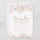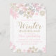Vinter Onederland inbjuds till första födelsedag med rosa, guld och silver glitter snöflingor.