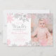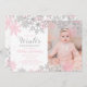 Vinter ONEderland, första födelsedag med rosa och silver glitter snöflingor, fotofödelsedagsinbjudan.
