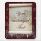 Winter parchment illustration med gammal papper rulla med snöslandskap och dekorerad med snö och självhäftande med mörk röd bakgrund med snöflingor.