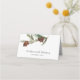 Vattenfärgad gräs, vergrön löv med pinekoner. Enkla platskort med elegans för vilken vintersäsong som helst, bröllop. Gör ställe-inställningarna extra speciella! Anpassa par namn för ett vinterbröllopstema eller en årsdag. Front har riktlinjer för gästhandskrivet namn och bordsnummer.