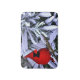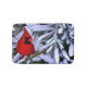 En vacker röd kardinal som vilar på snövintern Evergreens.