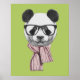 Den här designen har en söt panda med glasögon och en rosa sticka scarf.