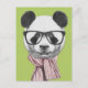 Den här designen har en söt panda med glasögon och en rosa sticka scarf.