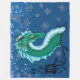 Blått, grönt och teal drakonprofil porträtt med snö som faller runt. Black Tribal ro.