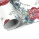 En helgdag som är papper och som innehåller en vattenfärgad trellis i röd ros under vintern tidigt med gräs och grisen träd stjälkar och bär som bildas i en lush helgdag trellis.