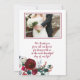 Tack för det roliga vinterbröllopet, tack vare ett fotokort med vit och röd burgnypa trendig, blommor och blommor i ro med säsong gräs grönt fir grenar och hullbär över en vit bakgrund.+++++++ Personliggör det med 2 foton (en kvadrat på framsidan och ett landskap på baksidan), med din namnteckning och text på framsidan och baksidan! +++++++++ Om du inte behöver bild och text på baksidan, ta bara bort dem!