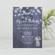 Chic elegant rustic möhippa-festinbjudan med vitt fallande snöflingor, band av twinkle ljus, en bunt av baby utandningsblommor i ett mason burk och en pil på blå lada-bakgrund. Fyll i informationen på plats. Du kan välja att anpassa den ytterligare genom att ändra typsnitt och färg på text. — Inbjudan är lämplig för en elegant av den eller de möhippor eller möhippor som formellt anordnas i land. — Kontakta mig om du behöver hjälp!
