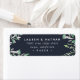 Designade för att matcha vår Winter Sage bröllop-samling har de här botaniska returetiketterna i eleganten information om returadressen i modern vit skrift på en marin blå bakgrund i riken, uppflätad av skisserad vintern i skuggad och sage-grönt.