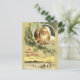 Viktorianskt julkort med Jultomten i benvit robe med gåvor, evergreen gren, vintersolnedgång i land, typografiska julhälsningar i gammalt skript, "A God jul" och redigerbart budskap, namn och adress på baksidan, för de nostalgiska helgdagarna.