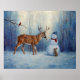 Winter-scenen hjort och Lycklig Snögubbe Poster
