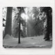 Svart och vit foto av Kung Canyon nationalpark på vintern med snö överallt och solljus ändå.