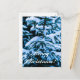 Spruce träd täckt med färskt snö i vinterskogen. Det snöar. Snöflingor i luft. Mörk grönt, blått och vitt färg av den dystra vinterdagen och snövinterdagen. Julvädret, julstämningen. Mängden färsk luft, lukten av snö och skog med gran. Helgdagarnas atmosfär, känslan av att sagan börjar. Du kan ändra eller ta bort malltexten: God jul!