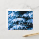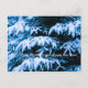 Spruce träd täckt med färskt snö i vinterskogen. Det snöar. Snöflingor i luft. Mörk grönt, blått och vitt färg av den dystra vinterdagen och snövinterdagen. Julvädret, julstämningen. Mängden färsk luft, lukten av snö och skog med gran. Helgdagarnas atmosfär, känslan av att sagan börjar. Du kan ändra eller ta bort malltexten: God jul och Gott nytt år!