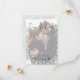 Det här sparar datumkortsdesignen är perfekt för meddelande om vinter eller helgdag. Parets foto markeras med ett vitt genomskinligt överlägg och omges av ett ram av mjukt vitt snöflingor. Baksidan är en mjuk vattenfärgad grått med vitt snöflingor. Skapat av Farmhouse Press.
