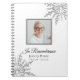 Inbjudan gäster som lämnar en anteckning till minnet av din kära efter att de passerat med elegant Winter Snöflingor Firande i livets begravningsgäst Bok. Den här bärbara datorn med Wintery-minneshyllan i anpassningsbar har en komplicerad grått snöflingor som lägger hörnen med vit bakgrund. Anpassa den med födelsedatum och dödsdatum, namn och bild.