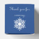 Ge är dina gäster, brudtärnor, marskalkar eller någon annan speciell behandling med det här anpassadet till att ha en blå bakgrund med en vit snöflinga på framsidan, baksidan och ovansidan av lådan. På var och en av dessa sidor finns också exempeltext som du kan anpassa för ditt eget vintertematiska bröllop eller evenemang. Se till att kontrollera de andra produkterna på Winter-Snöflingorna i Blå-serien för att skapa en verkligt samordnad sökning efter ditt evenemang.