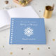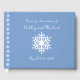 Skapa en underbar anpassningsbar för gästerna på ditt vinterbröllop eller evenemang att lämna namn och meddelanden till lycklig-paret. En bakomliggande bakomliggande bakomliggande baksida dekoreras med en vit snöflake på framsidan och baksidan. Längs ryggraden skapar en mönster i dessa snöflingor en söt accent. Framsidan har ett exempelmeddelande, namn, och datum som kan anpassas för att göra bok unikt för händelsen. Kolla in Winter-Snöflingor i Periwinkle-sektionen på Lagrarna av Design: Bröllop-design för andra matchande produkter så att du kan skapa en samordnad vinterhändelse.