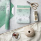Fint snöflingor av olika storlek på en mjuk och lätt färgad bakgrund av blekens grönt.