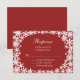 Fintvätt snöflingor i ett lacy mönster mot kranberröd bakgrund, accentuera denna samordnande OSA inför inbjudan till bröllopsmötet i Snöre.