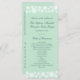 Fintvätt snöflingor på en isig mint-bakgrund dekorerar det här vinterbröllopsprogrammet. Om det behövs fler objekt i den här samlingen kan du kontakta oss på prettyfancyinvites@gmail.com med din begäran.