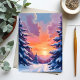 Winter Snow Sunset | Watercolor Landscape Painting Vykort