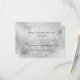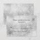 Vinterbröllopsmiddag eller bröllop OSA under elegant, utförd i en vit och lätt grått-glatt tittar bakgrund. Bilder av silver-ton och rombliknande tittar snöflingor dekorerar den övre högerna och grund lämnat hörnet. Anpassa den svarta texten till kostym efter dina behov. Välj bland många olika alternativ för kort och lagrar för det utseende du vill ha bäst. Matchande inbjudningar och kuvert är tillgängliga.