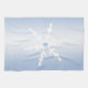 Den här designade amerikanska kökshandduken MoJo har en enda vit snöflinga med en mindre blå i mitten. Den är inställd på en underbar, strålande blå övertoningsbakgrund. Perfekt för julhelgen eller vid någon tidpunkt på året!